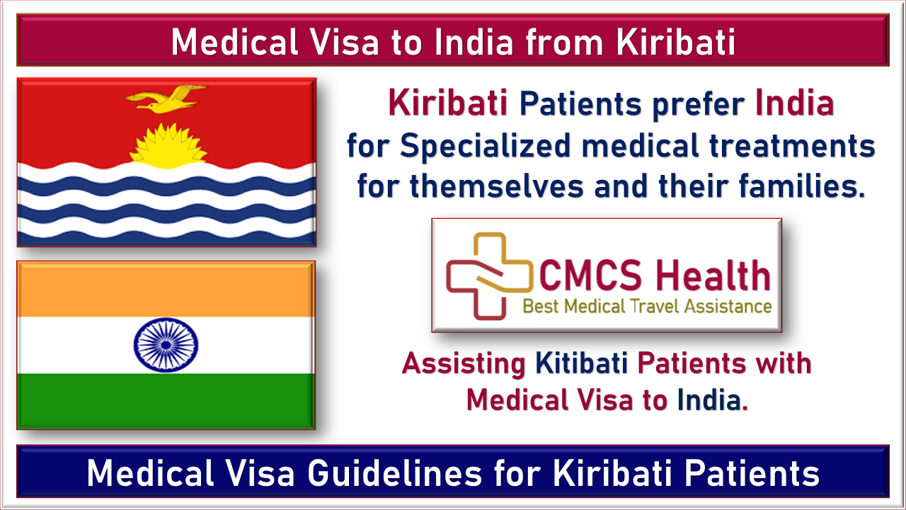 Patients from Kiribati visit India for Medical treatments. Kiribati Patients seeking affordable, high-quality medical treatment must get Medical Visas to visit India. A Kiribati Patient coming to India for Medical treatment will be granted a Medical Visa (MED). At the same time, co-travelers with the Kiribati patients will be given the Medical Attendant Visa (MED X). CMCS Health, the best Medical Tourism Provider Agency in India, assists Kiribati patients in procuring Medical visas from Kiribati to India.