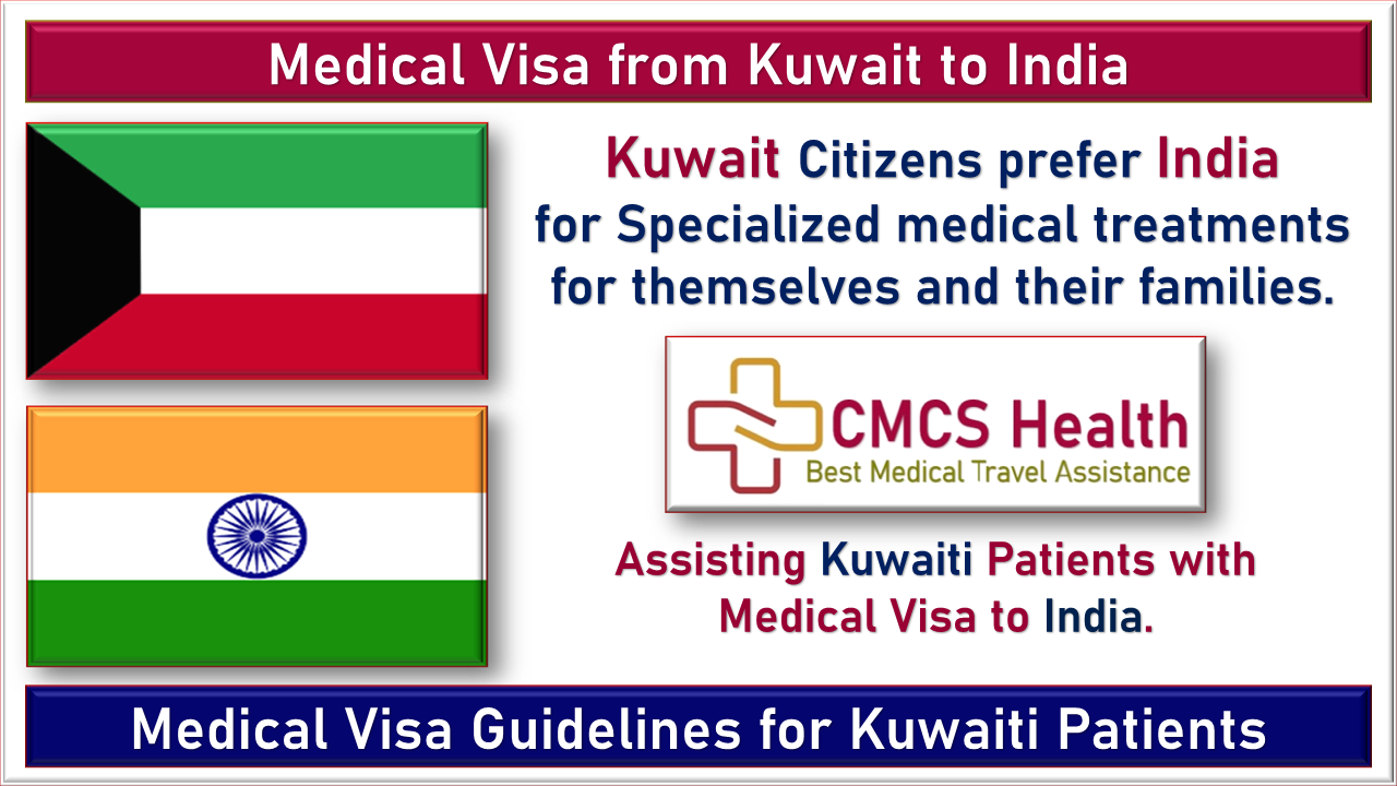 Kuwaiti citizens applying for a medical visa to India must have a referral letter from a local doctor in Kuwait describing the patient's medical condition and mentioning that the patient's condition can be better treated outside Kuwait.